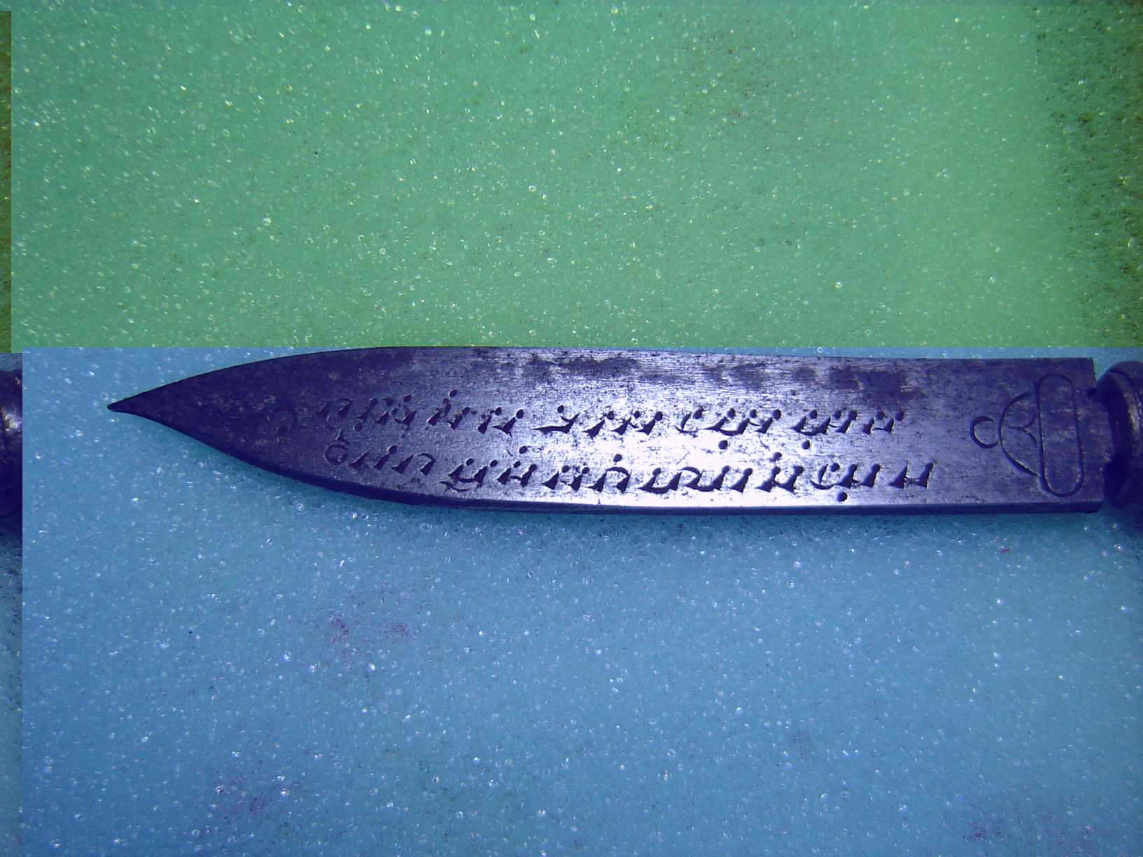 แล้วก็เริ่มลงจารตัวแรก (เหมือนเอาเข็มขีดใบตองครับ) เจ็บๆคันๆนิดๆ