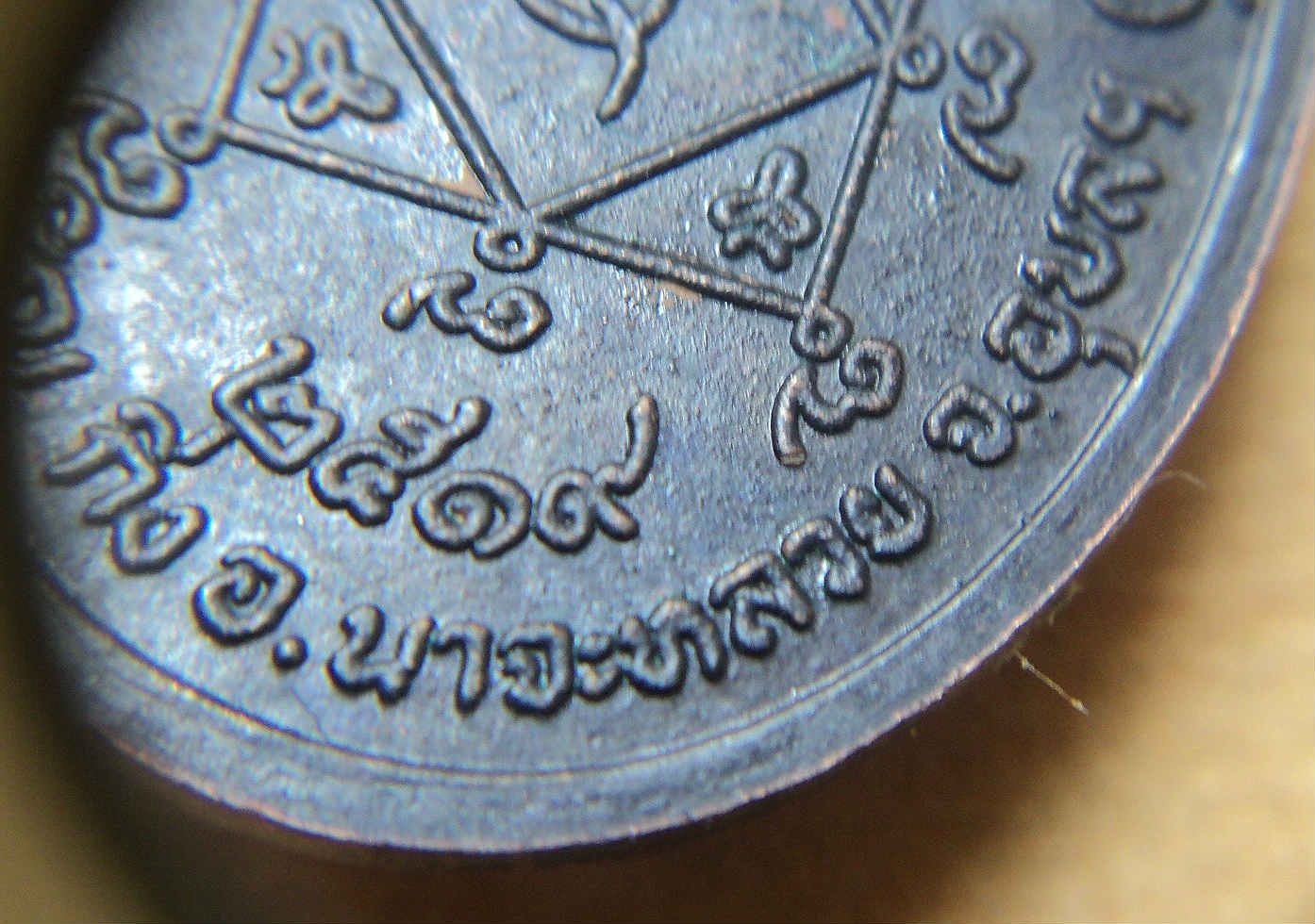 เอาวิธีสังเกตุง่าย ๆ แบบไม่ต้องส่อง 1. สังเกตุโค๊ดครับ เหรียญนี้โค๊ดในพิมพ์ ไม่ใช่ตอก 2. หูเหรียญด้านหลังไม่มีเนื้อปลิ้นเกินกลับมาด้านหลัง